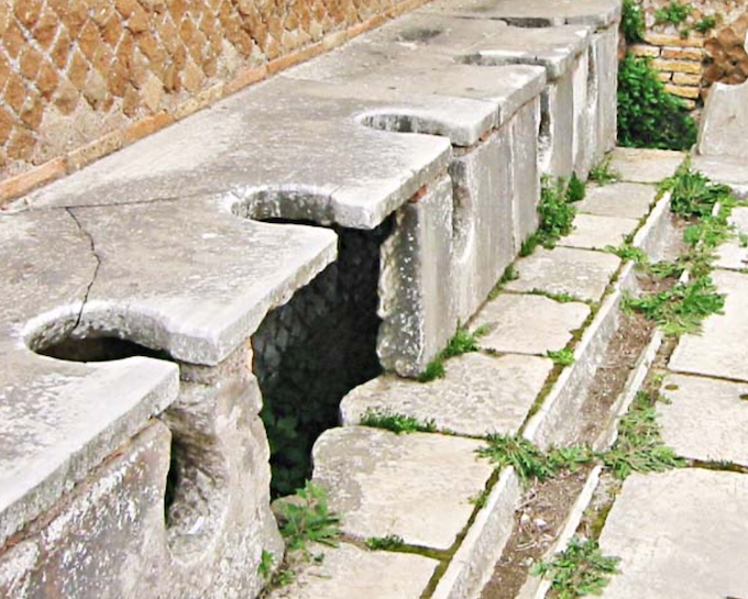 Contrary to popular belief, Thomas Crapper did not invent the toilet. In fact, different toilets (from the classic “hole out back” to chamber pots) have been around for thousands of years. For example, the Mohenjo-Daro civilization of Pakistan is known to have had toilets or “waste chutes” built into the outer walls of their homes since 2800 BCE! The ancient Skara Brae settlement of Scotland (3100-2500 BCE) even had waste systems that removed excrement from the premises via flowing water below! Meanwhile, the public toilets like those you see in Rome came about a few hundred years BCE.