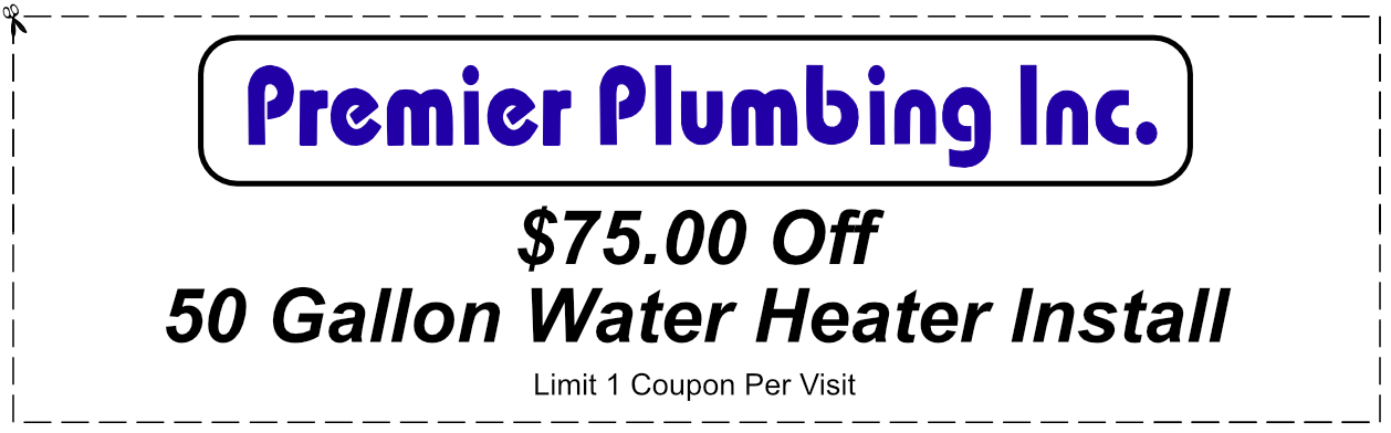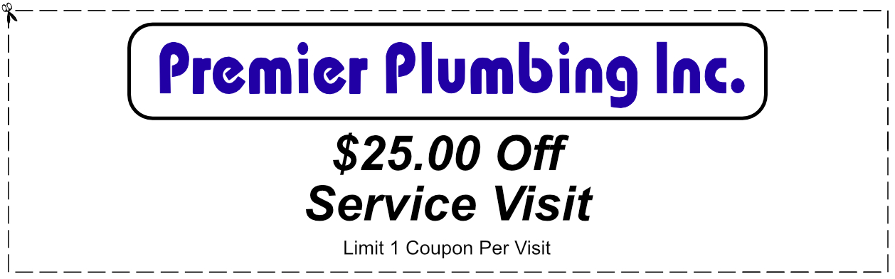 Present the following Premier Plumbing Coupons on your cell phone at the time of service to receive a SPECIAL DISCOUNT!